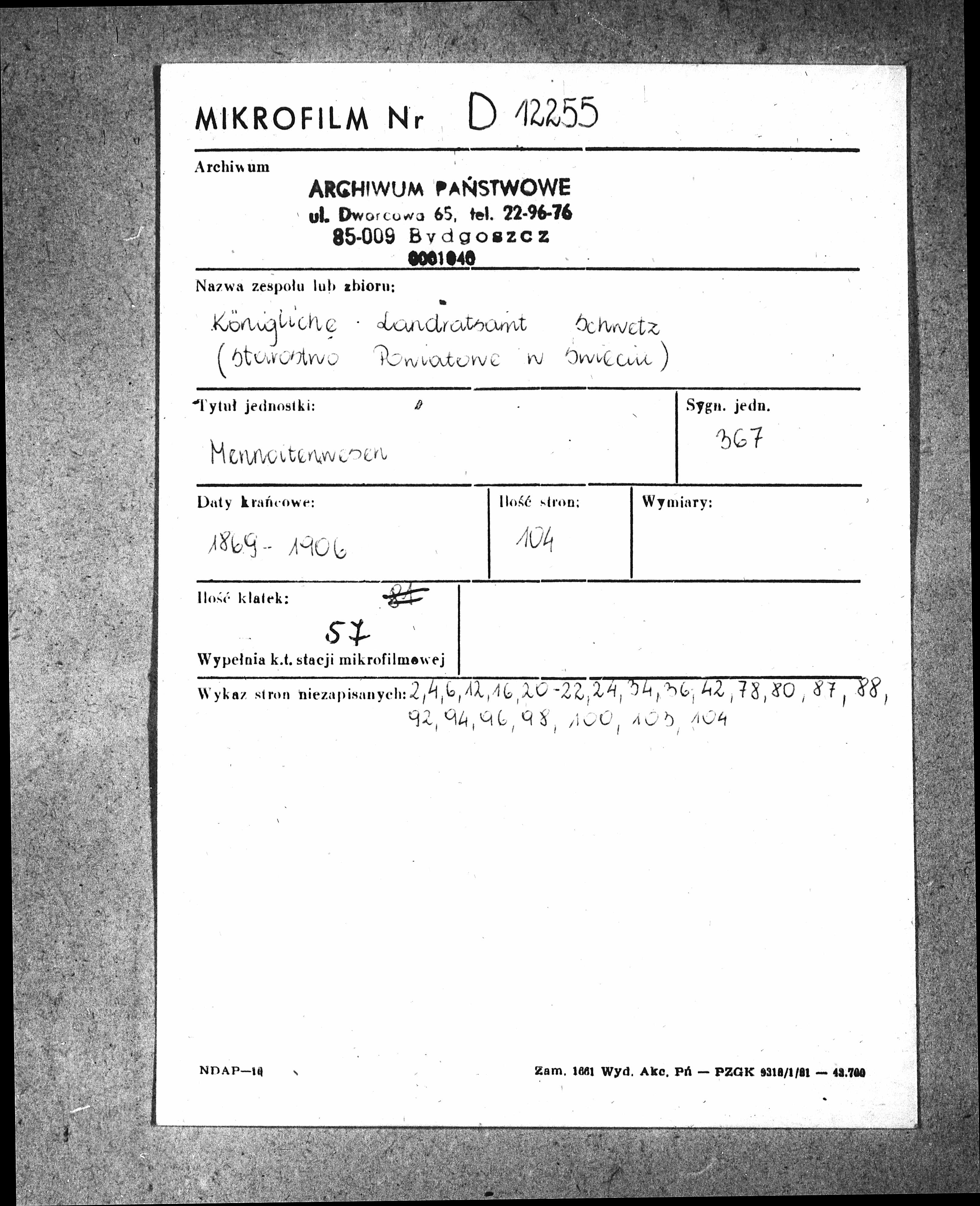 6/17/0/3/367 („Das Mennonitenwesen“, 1869–1906)