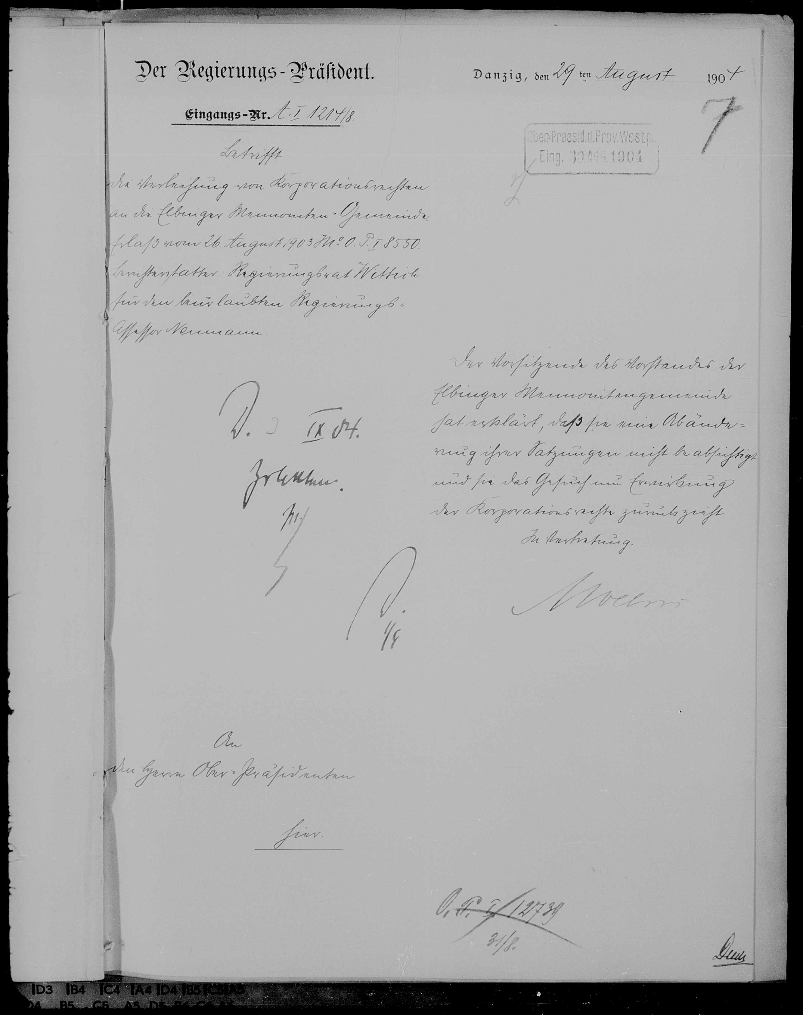 10/7/0/7/124 („Mennoniten-Gemeinde in Elbing“, 1903–1904)
